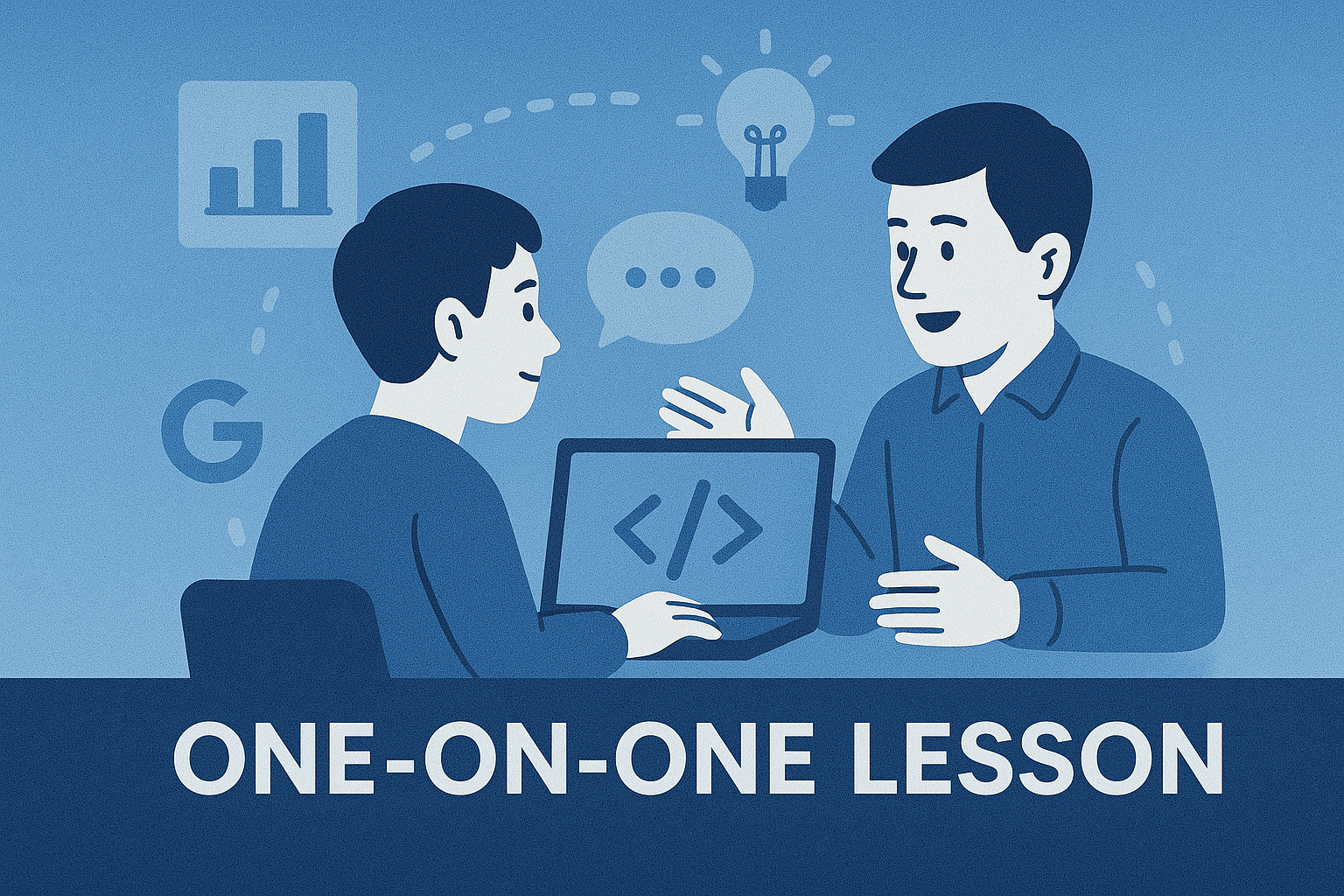 システム開発の要件定義や基本設計、プログラミングの基礎から、収益ブログの立ち上げ、記事の書き方、アフィリエイトやGoogle AdSense広告の対応まで、マンツーマンで丁寧に指導します。初心者にも安心のレッスンを提供しています。